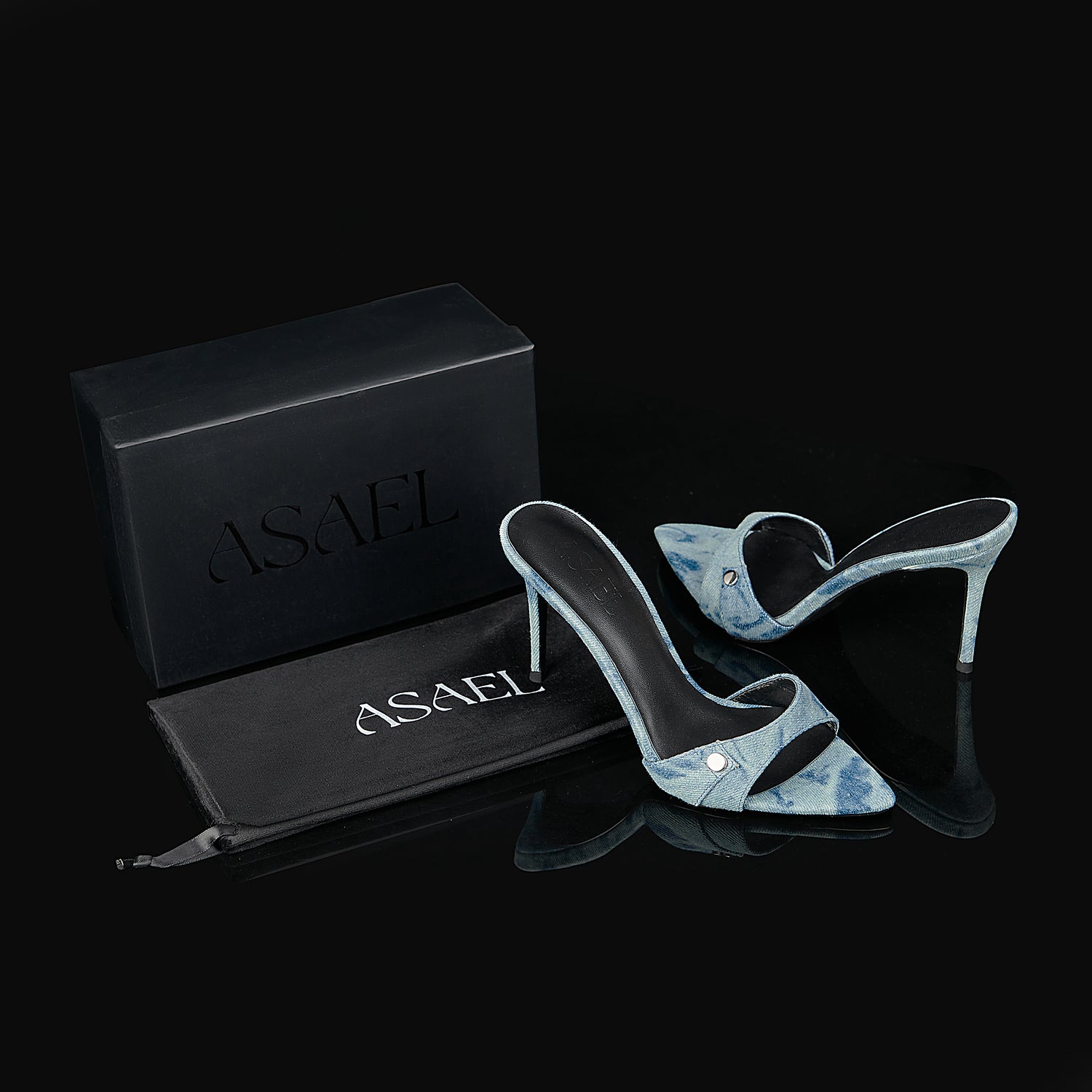 Avec sa silhouette affûtée, son jean tie & dye et son détail métallique, cette mule élance la jambe et affirme le look.